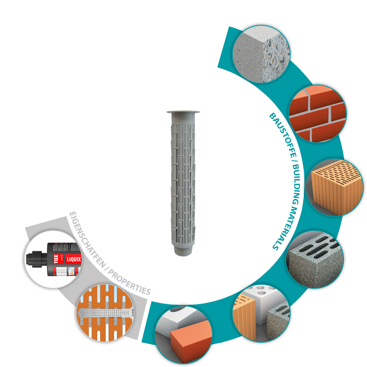 - Die Siebhülsen werden in Verbindung mit dem Injektions-Systemen Liquix in Mauerwerk verwendet