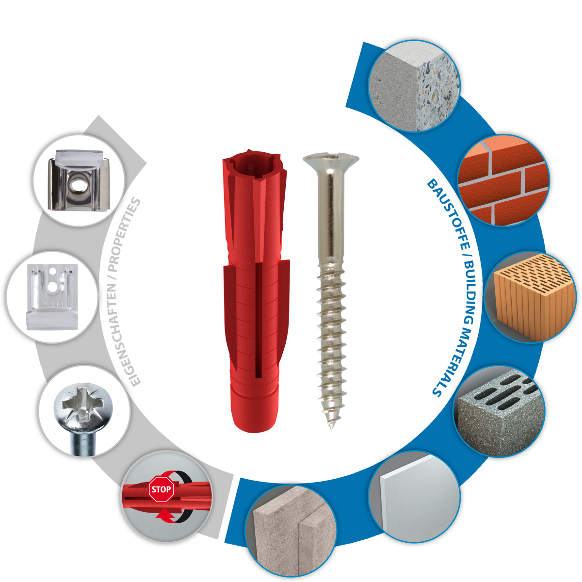 - Tri-Dübel, zwei federgelagerte Metallklammern, zwei Kunststoffklammern und Schrauben mit PZ2-Antrieb