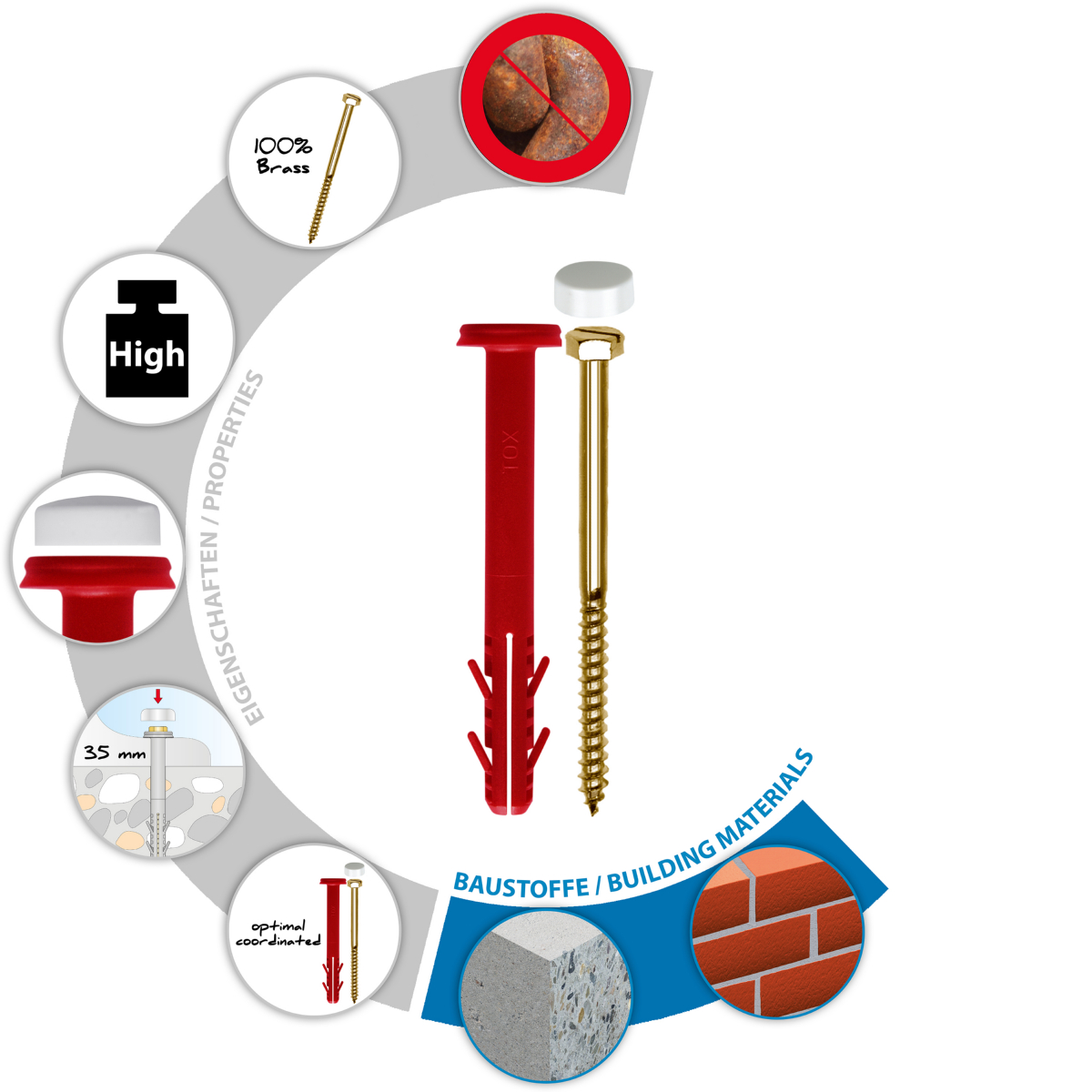 - Wirkt in Beton und Vollstein durch Spreizung