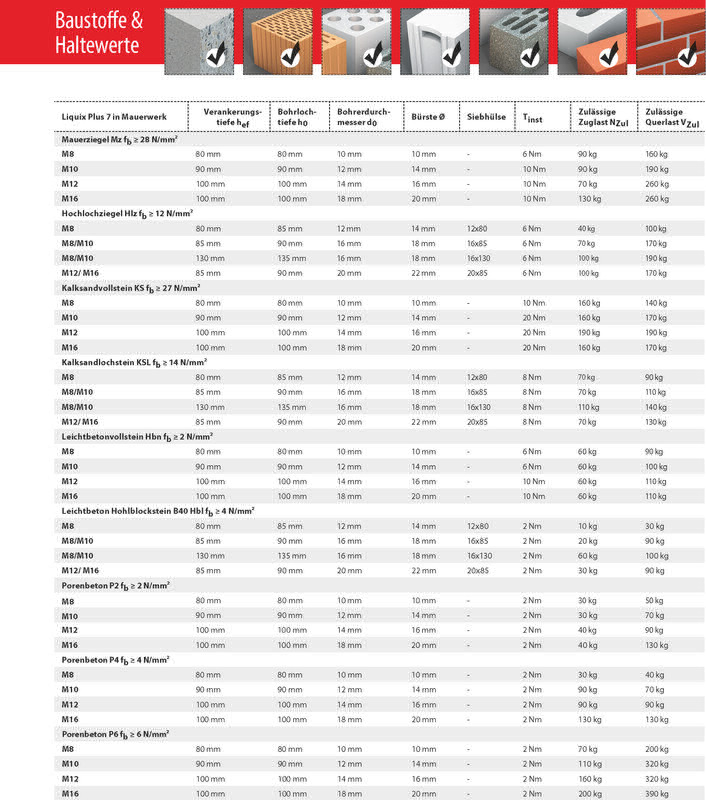 - Zugelassen in Verbindung mit handelsüblichen Gewindestangen oder TOX Gewindestange Stix