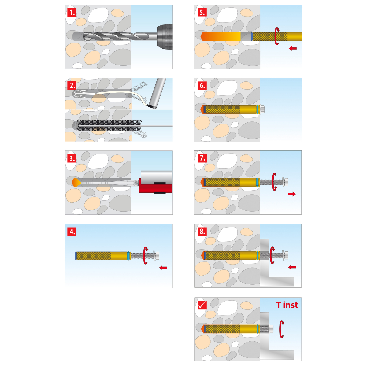 - Der Innengewindeanker Liquix Impact ist für handelsübliche metrische Schrauben und Gewindestangen in den Größen M8 und M10 geeignet