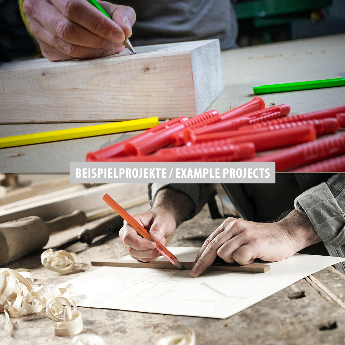 Die Zimmermannsbleistifte Neo von TOX sind universell sowohl auf der Baustelle als auch in der Werkstatt einsetzbar. Durch die ergonomische Form liegt der Bleistift gut in der Hand und verhindert ein Wegrollen. Der Bleistift ist in knalligen Neonfarben mit einer Länge von 250 mm und einer Strichstärke von 1 – 2 mm erhältlich. Schlagfeste, bruchsichere Mine aus Graphit Härtegrad: Medium (HB) für Strichbreiten von 1 – 2 mm, ungespitzt, 250 mm lang Holzschaft: Oval-vierkant, in knalligen Neonfarben lackiert Erhältlich in den Neonfarben: gelb, grün, orange Geliefert wird der TOX Neo Zimmermannsbleistift in der Neonfarbe Gelb in einem praktischen Beutel mit 12 Stiften Der „rote Allzweckdübel“ hat TOX bekannt gemacht: Auf dem Gebiet der Allzweckdübel ist das Unternehmen führend. Das umfassende Sortiment ist konsequent auf die Bedürfnisse der Kunden und Endanwender ausgerichtet. Die Marke TOX steht für innovative Produkte und kompetente Lösungen im Bereich der Befestigungstechnik.