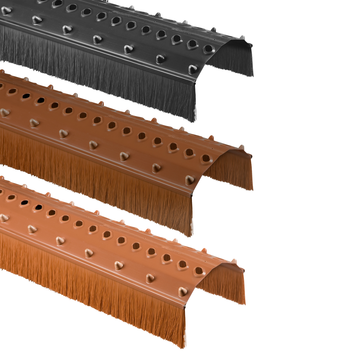 Das Bürstenelement ist ein langlebiges formstabiles Firstlüftungselement mit einer sehr guten Anpassungsfähigkeit. Das Belüftungs- und Abdichtungselement schützt den Dachfirst vor Witterung- und Sonnenstrahlen. Das Bürstenelement bietet ungehinderten Lufttransport dank der großen Belüftungsöffnungen.