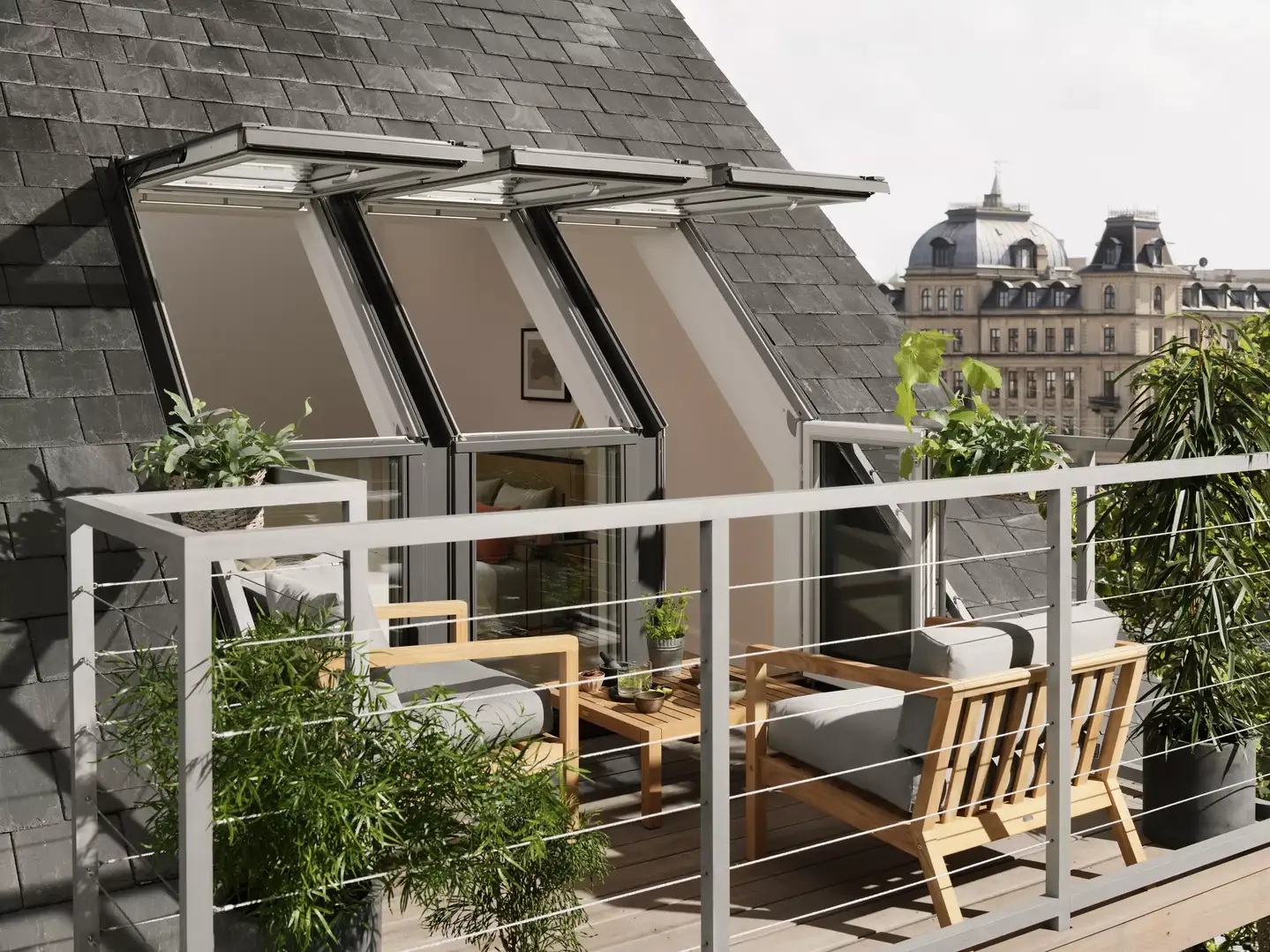 Der Austausch von VELUX Dachterrassenfenstern vor dem Baujahr 2000 erfordert Anpassarbeiten an Dachaufbau und Innenverkleidung.