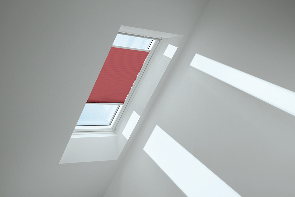 Lichtdurchlässige VELUX Plissees tauchen die Wohnräume Ihrer Kunden in eine besonders sanfte Lichtstimmung und schaffen individuelle Deko-Akzente.