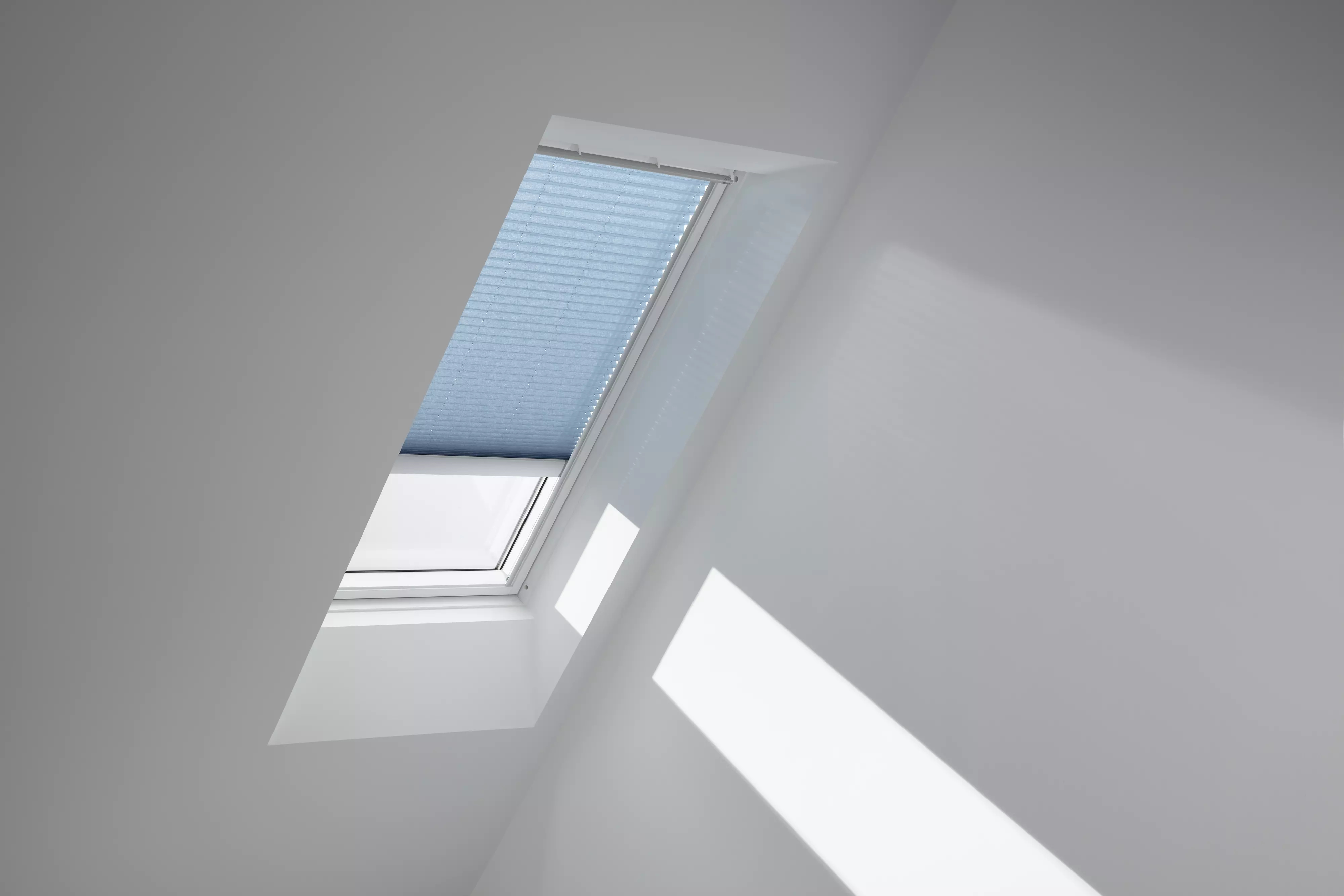 Lichtdurchlässige VELUX Plissees tauchen die Wohnräume Ihrer Kunden in eine besonders sanfte Lichtstimmung und schaffen individuelle Deko-Akzente.