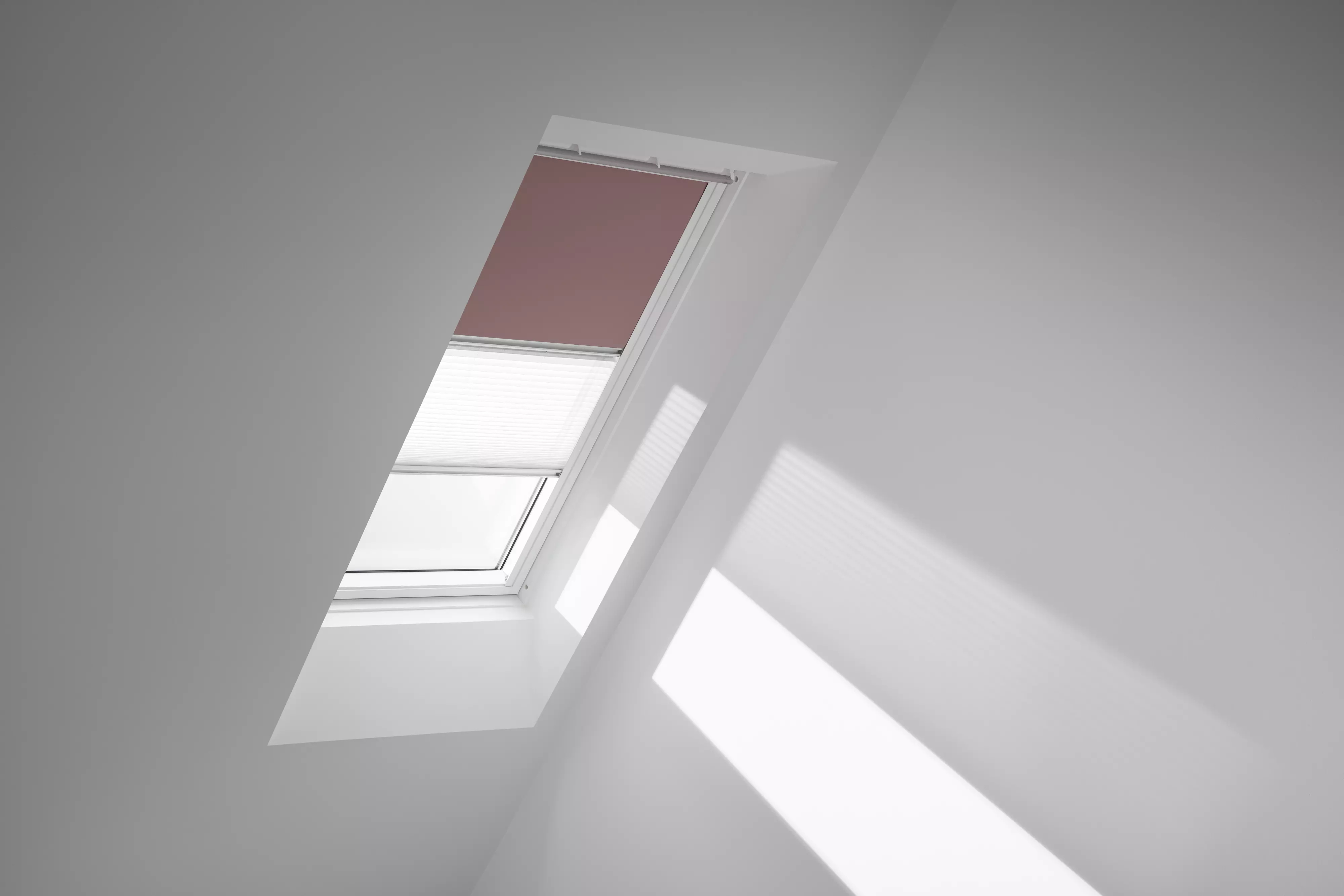 Bei Bedarf den Raum optimal abdunkeln oder das Tageslicht nur etwas abmildern und somit eine angenehme Raumatmosphäre schaffen. VELUX Verdunkelung Plus vereint zwei Produkte – Verdunkelungs-Rollo + Plissee - in einer Kombination. Regulieren Sie Licht und Schatten ganz nach Ihrem Bedarf.