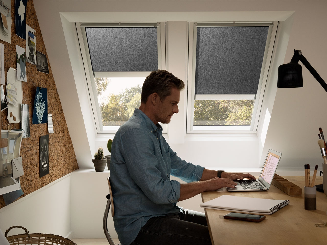 Werden sie nicht gebraucht, verschwinden sie in einem schlanken Alugehäuse oben am Fenster.