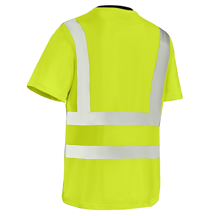 Das zertifizierte Warnschutz-T-Shirt HOOGE ist dank der dehnbaren Reflexstreifen und dem weichen Gewebe sehr angenehm zu tragen und macht jede Bewegung mit. Kein kratzendes Etikett stört im Nacken.