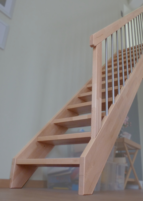 Die eingestemmten Stufen sorgen für die formschlüssige Verbidenung zu den soliden Wangen.