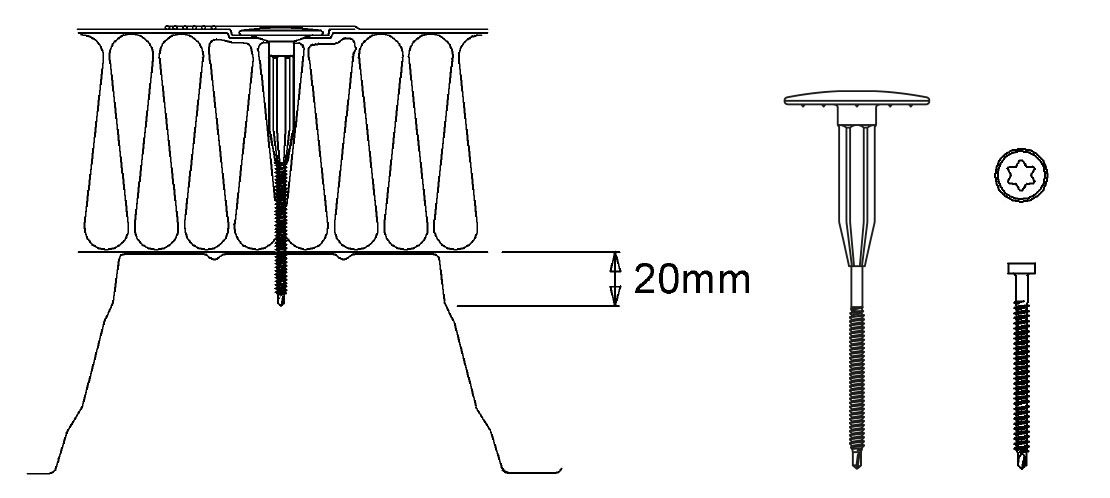 Zur mechanischen Befestigung von trittfesten Dämmstoffen und Dachbahnen auf Stahltrapezprofilen. Für den Einsatz bei Dachbahnen mit hoher Perforationsfestigkeit.