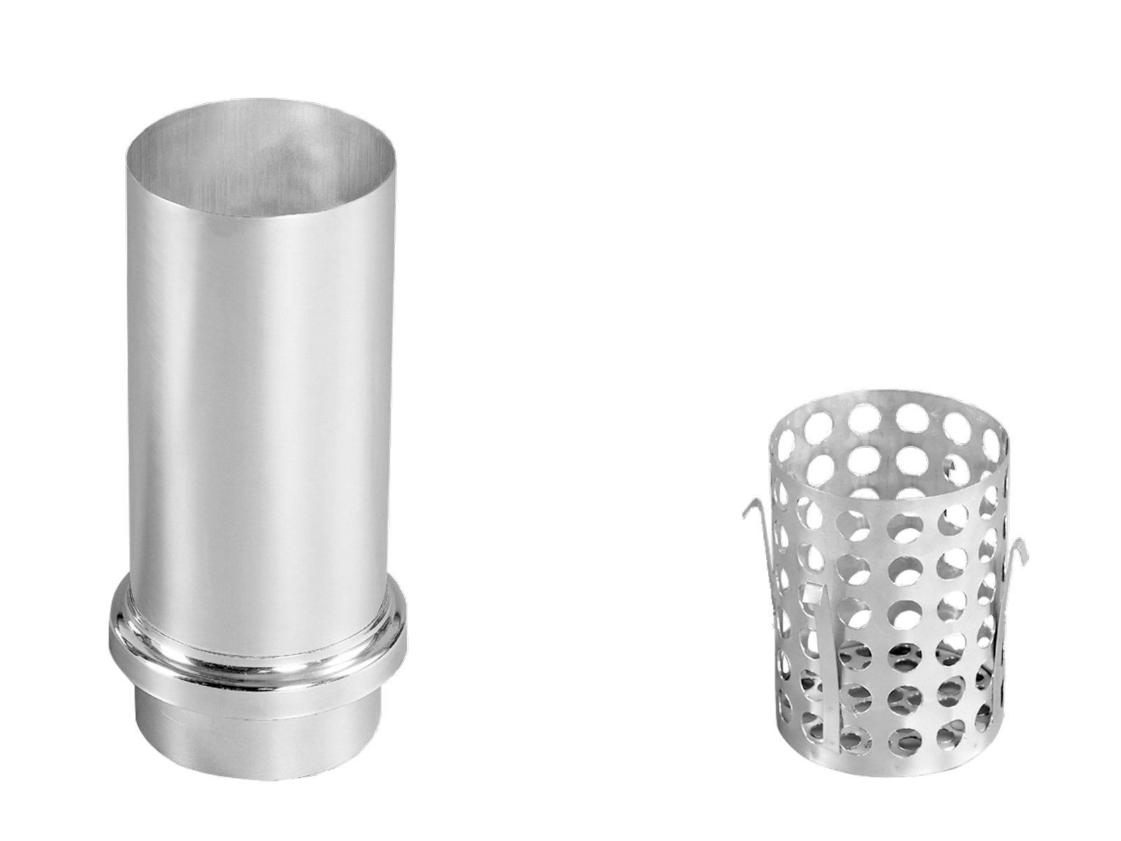 Die Schiebemuffe mit Laubkorb von Zambelli dient der Verbindung zweier Ablaufrohre und kann durch Hochschieben geöffnet und gereinigt werden. Der Laubkorb kann entnommen werden.